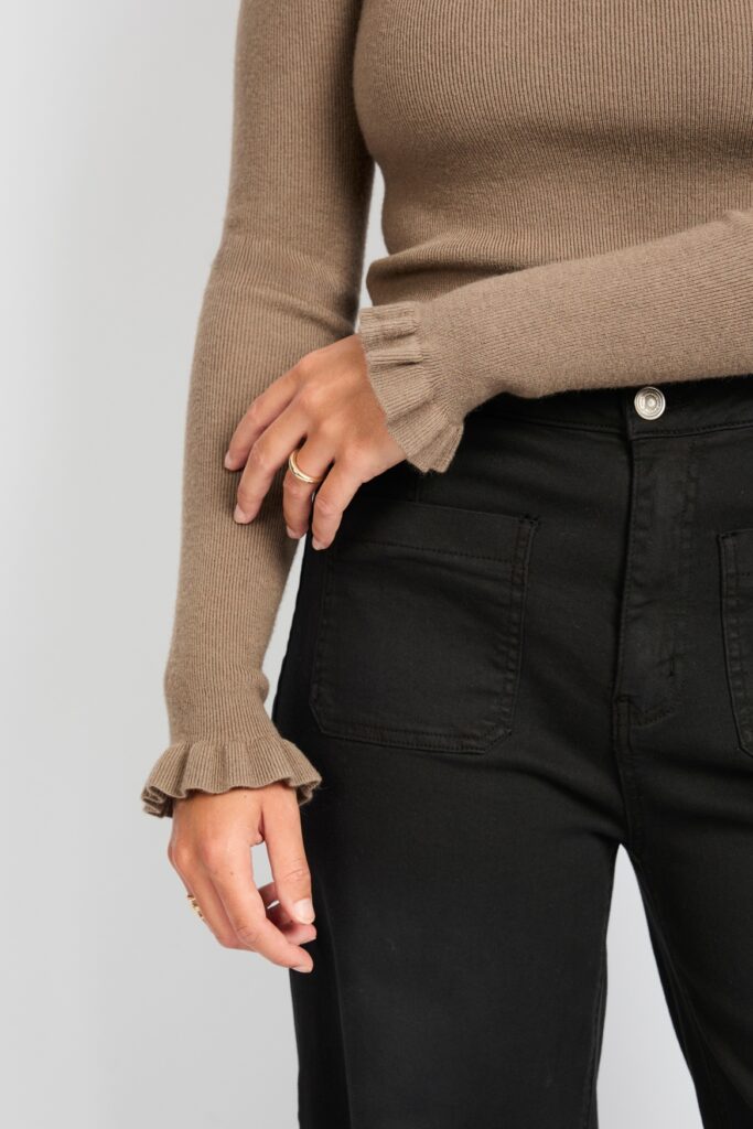 Een elegante, lichtgewicht pullover in warme bronze tint, uitgevoerd in een fijngebreide stof. De Astrid Knit Pullover heeft een relaxed fit, subtiele ronde hals en lange mouwen, ideaal voor zowel casual als stijlvolle looks in het tussenseizoen.
