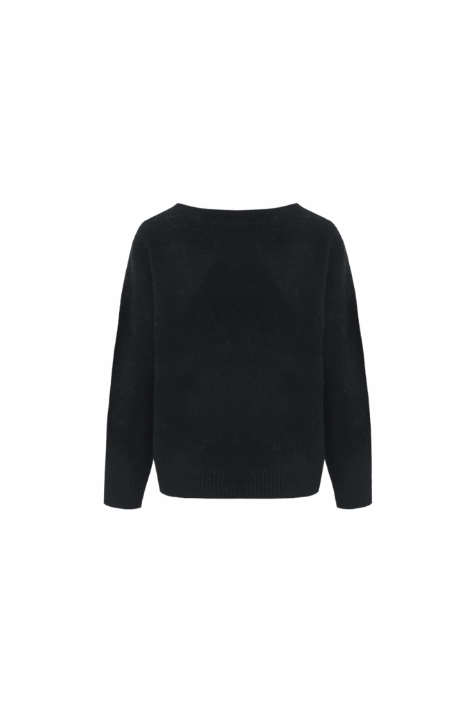 Gebreid vest in zwart met bloemmotief borduursels op de voorkant. Een comfortabele en stijlvolle knit die basic en verfijnd combineert.