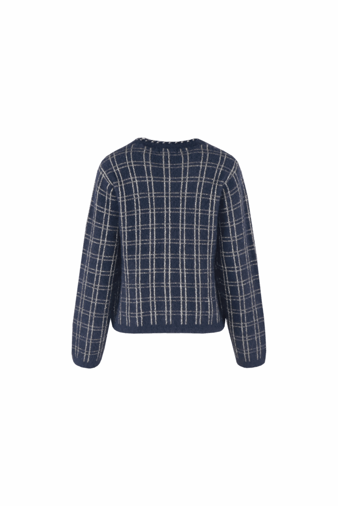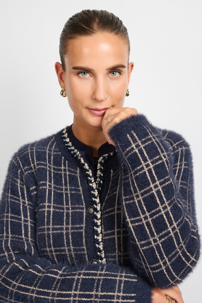 Stijlvol vest in midnight blue met sandkleurige accenten. Een zachte knit met een comfortabele pasvorm, perfect voor gelaagde looks.