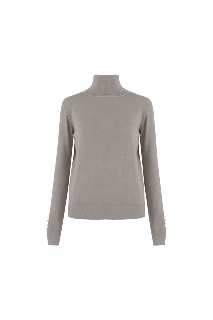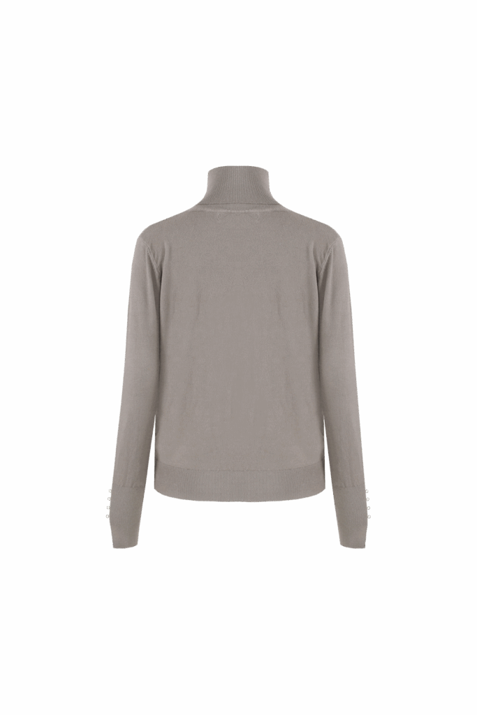 Deze gebreide Coltrui biedt warmte en stijl met de hoge col en subtiele pareldetails op de mouwen. Perfect voor herfstdagen waarop je er verzorgd en comfortabel uit wilt zien.
