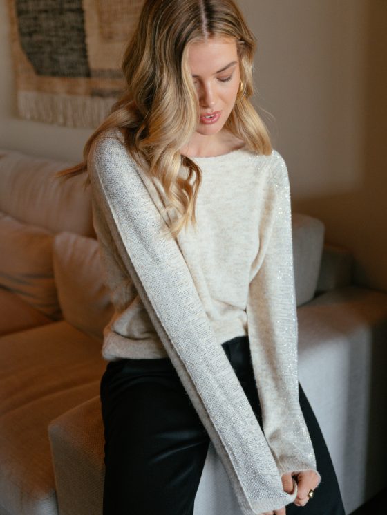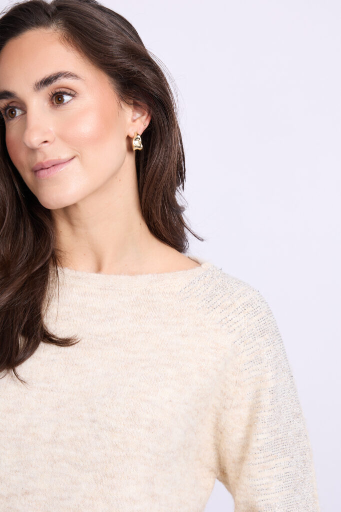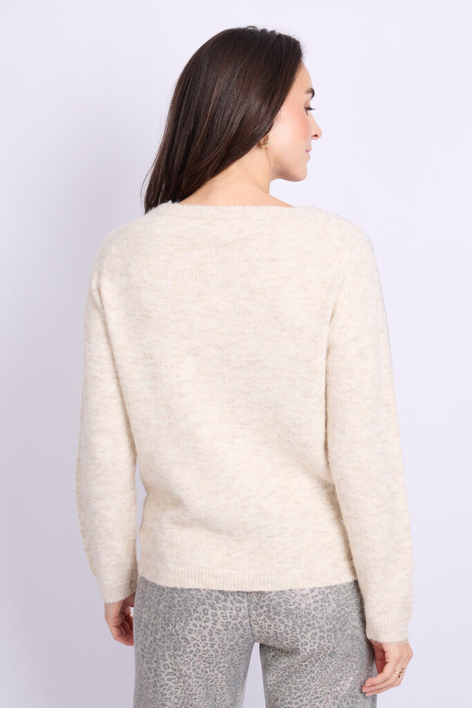 De Keira knit pullover van C&S is een fijngebreide pullover met decoratieve strass steentjes op de schouders en mouwen. De pullover heeft een losvallend model en is voorzien van een ronde halslijn.
