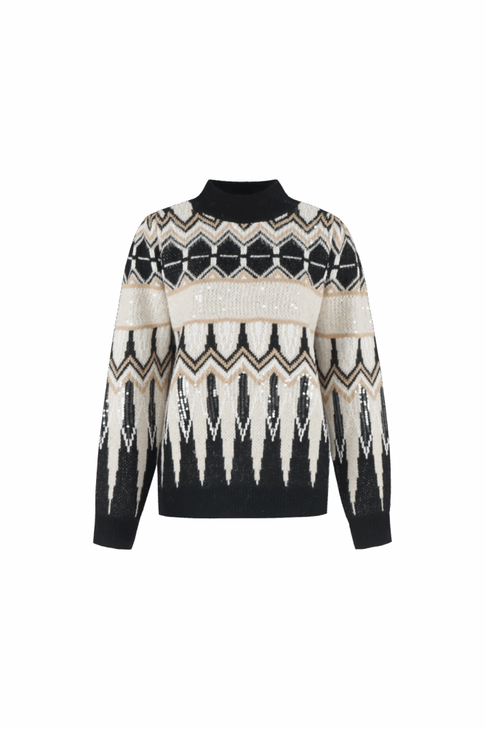 Moderne pullover in black met sandkleurig detail. Een zachte knit met een comfortabele pasvorm, perfect voor zowel casual als elegante outfits.