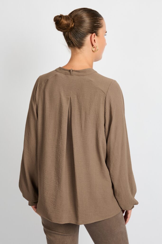 De damesblouse Lillith combineert comfort en stijl, waardoor hij een opvallende keuze is voor de herfst/winter. Gemaakt van Polyester, biedt deze blouse een lichte en zachte voering die aangenaam aanvoelt op de huid. Met zijn regular fit en normale lengte is deze blouse geschikt voor zowel casual als iets gekledere gelegenheden. De ronde halslijn en sjaal en lange mouwen met knoopsluiting voegen een verfijnde touch toe, terwijl de kleur Bronze een chique uitstraling geeft.