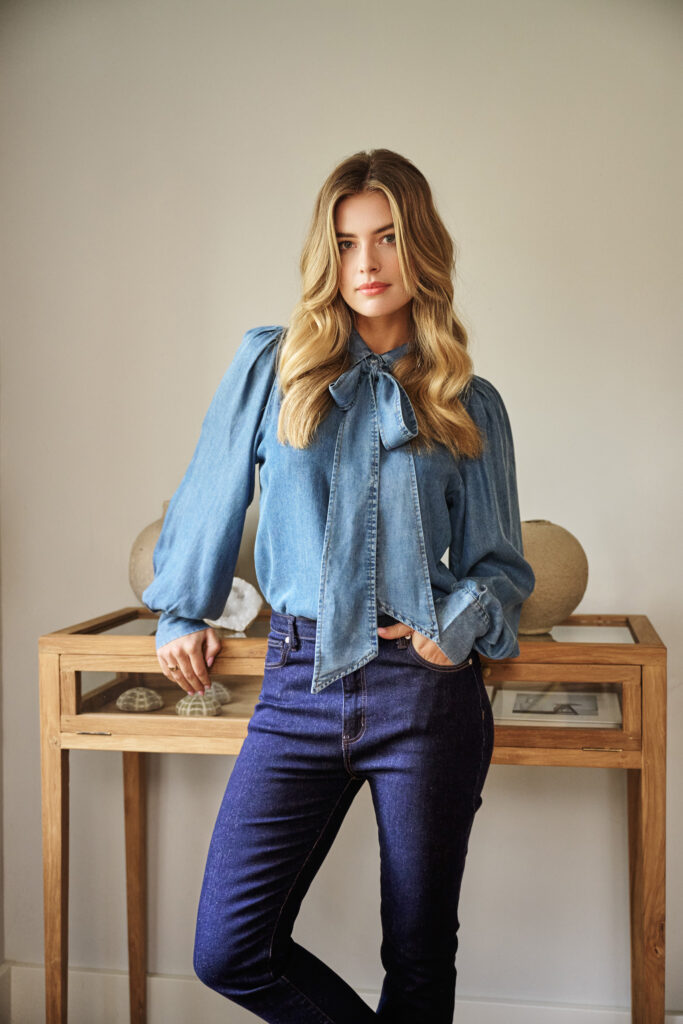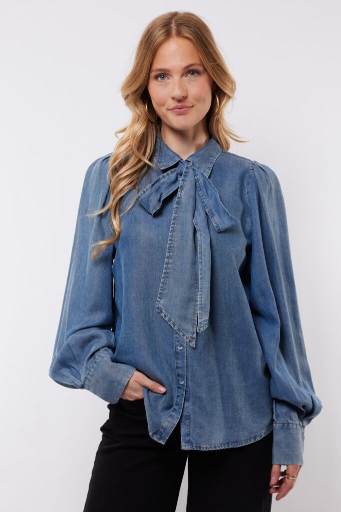 Deze blouse is van C&S The Label en gemaakt van 100% lyocell met lange mouwen. De knoopsluiting,Strik en kraag maken het stijlvol, zo draag je het gemakkelijk elke dag.