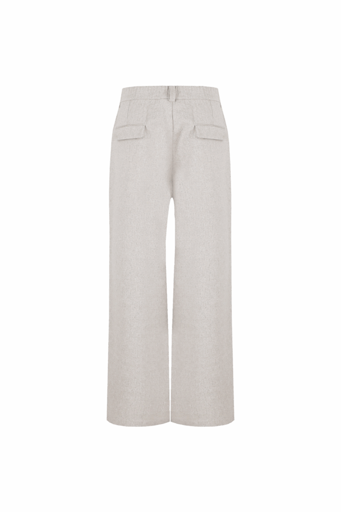 Stijlvolle broek in de kleur sand met een rechte pasvorm. Voorzien van klepzakken op de achterkant en een elastische tailleband voor extra comfort.
