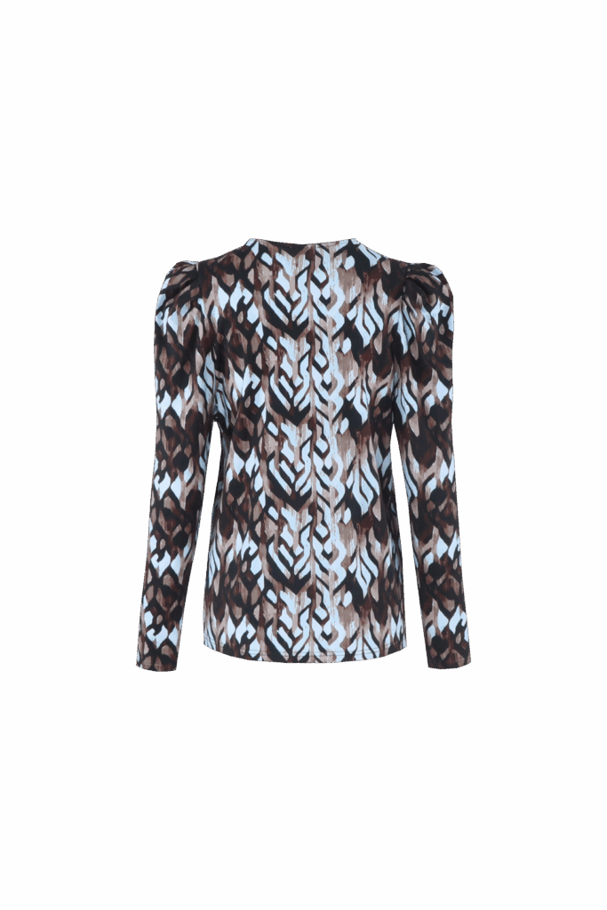 Lichte en stijlvolle top in skyway met bronze accenten. Comfortabel en elegant, ideaal om zowel casual als chic te dragen.