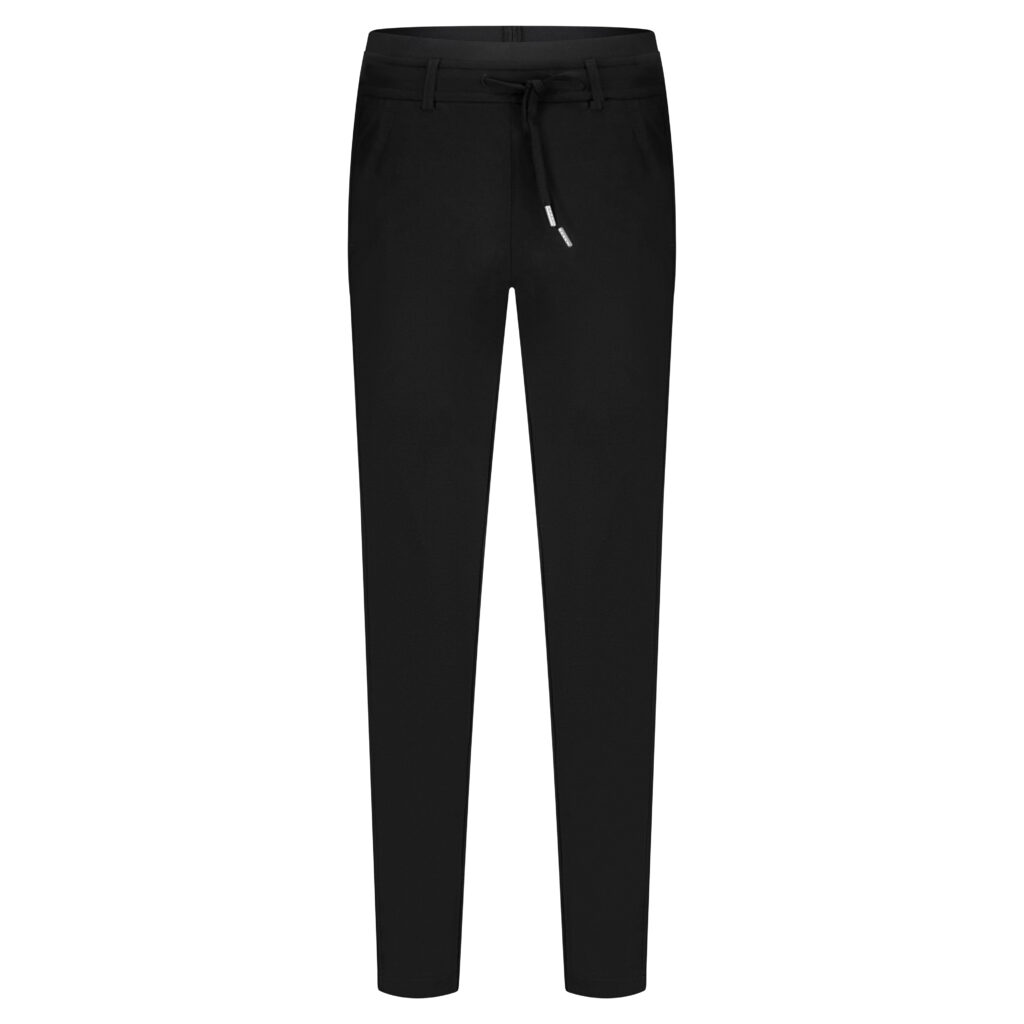 Pasvorm: hoge taille – regular fit – taps toelopende pijpen