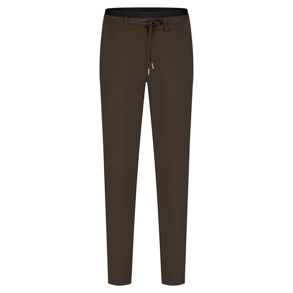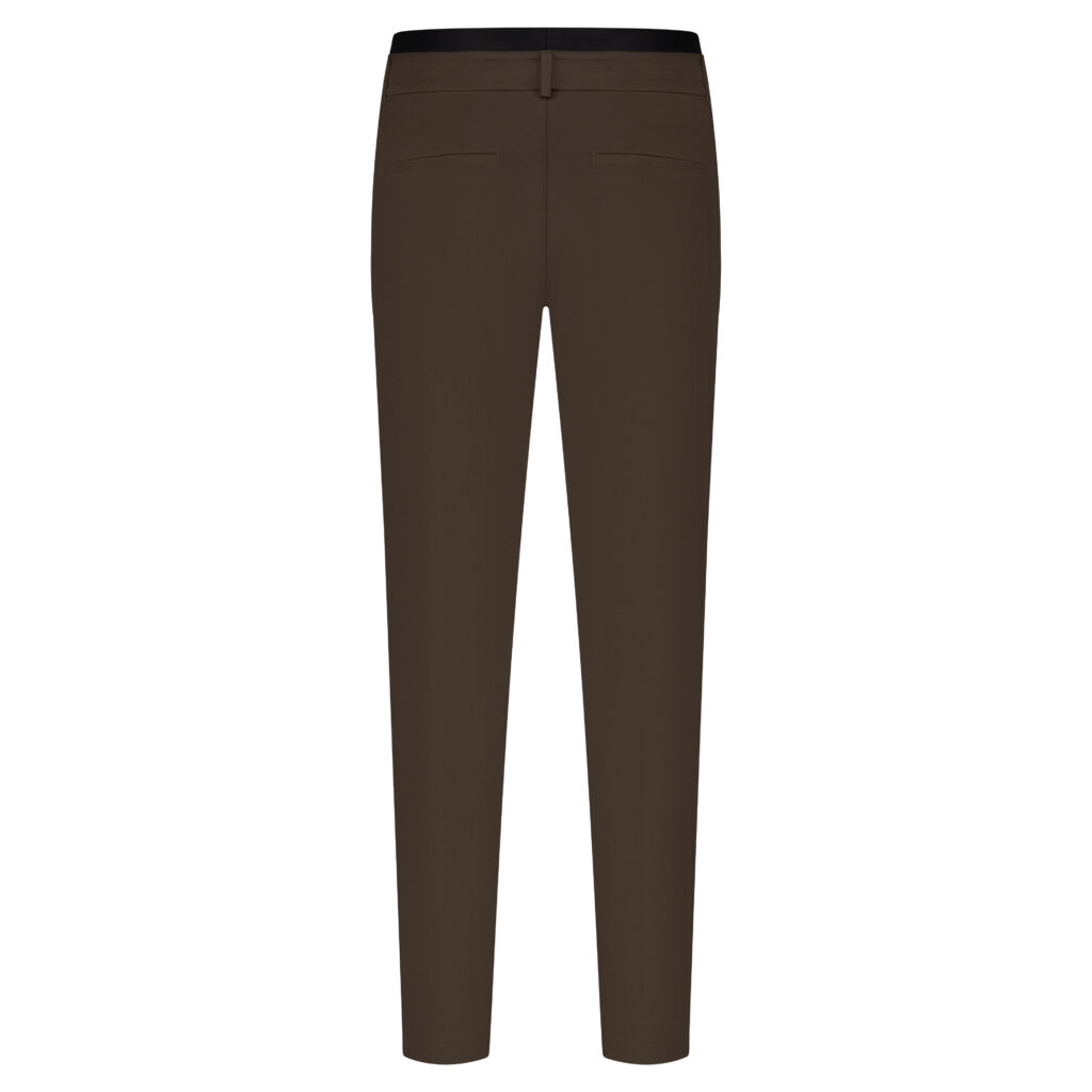 Pasvorm: hoge taille – regular fit – taps toelopende pijpen