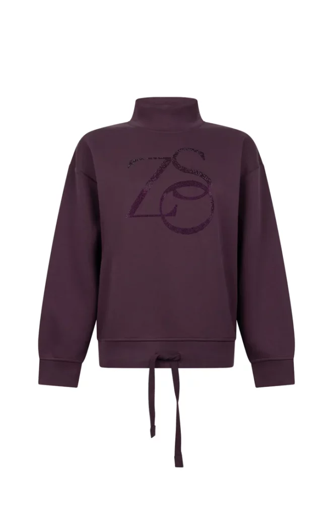 De Sweater Simone Bordeaux van Zoso is een zachte trui met ronde hals en glanzend logo op de voorkant. De rechte pasvorm en strikdetail onderaan geven deze sweater een moderne en sportieve uitstraling.