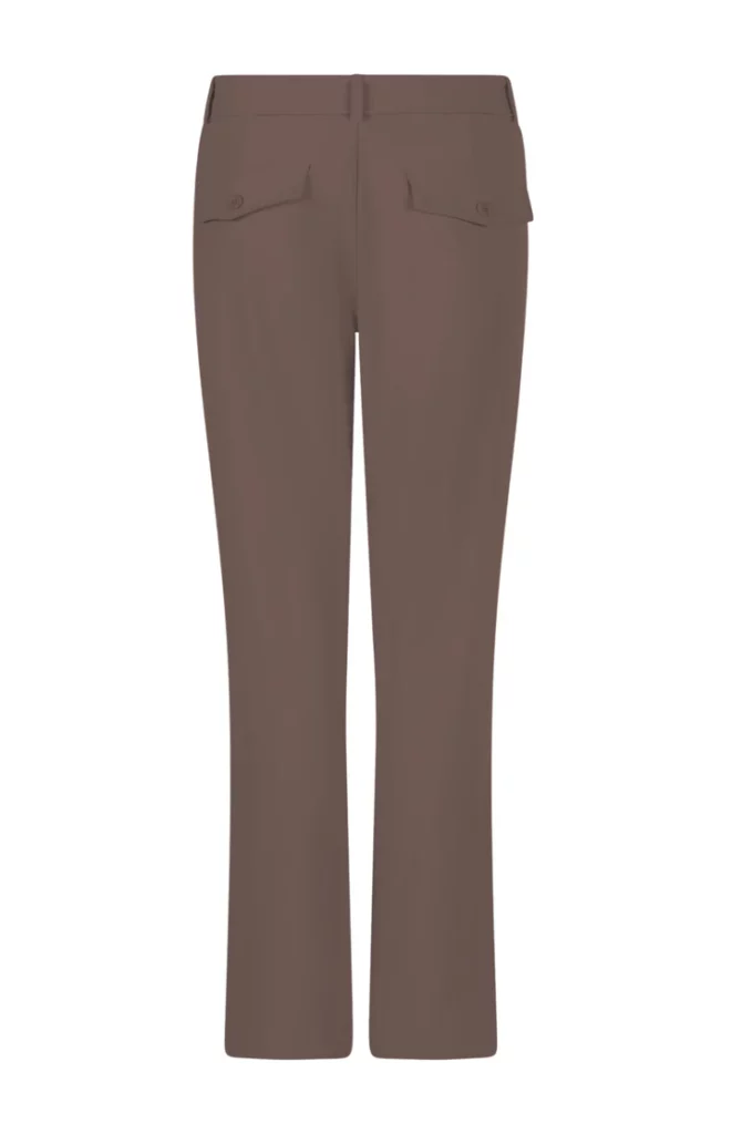 De Travel Broek Belle Mocha van Zoso straalt klasse uit met haar rechte pasvorm en subtiele uitlopende pijpen. De strikceintuur in de taille en de soepele travelstof geven de broek een verfijnde en comfortabele touch.