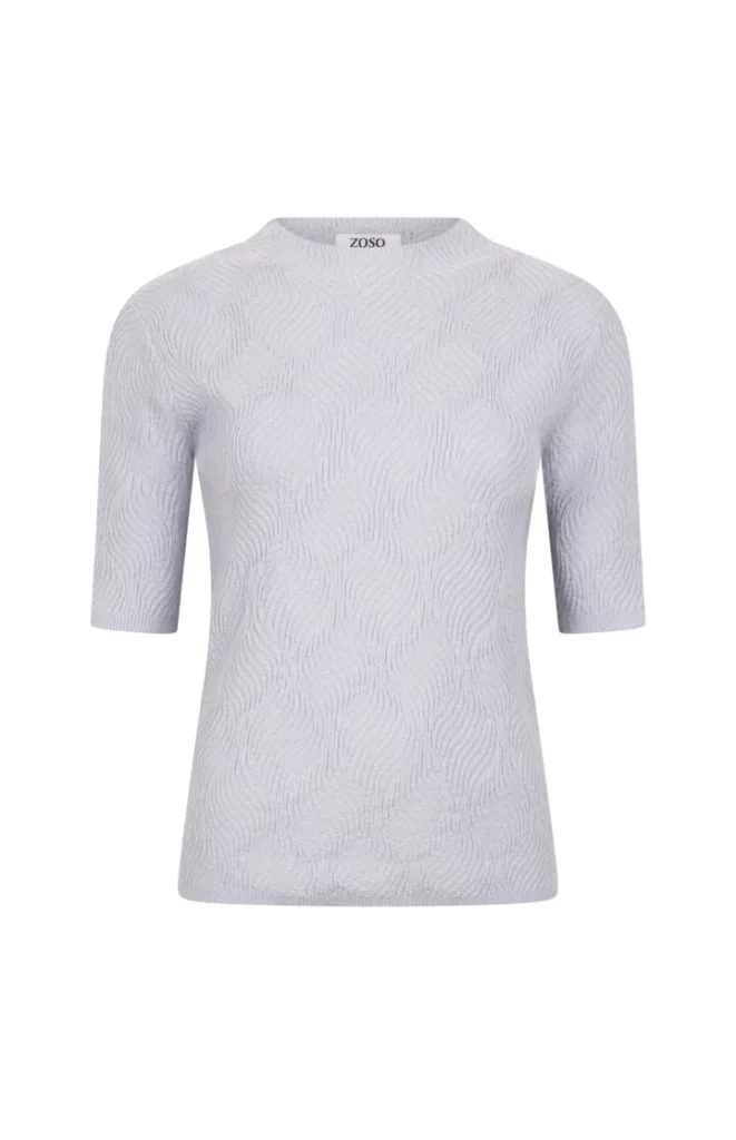 De Sweater 254 Posh Blue van ZOSO is een stijlvolle trui met een verfijnd patroon dat een subtiel effect creëert. De frisse blauwe kleur geeft een moderne, elegante uitstraling, terwijl de halflange mouwen en ronde hals zorgen voor een tijdloze pasvorm.
